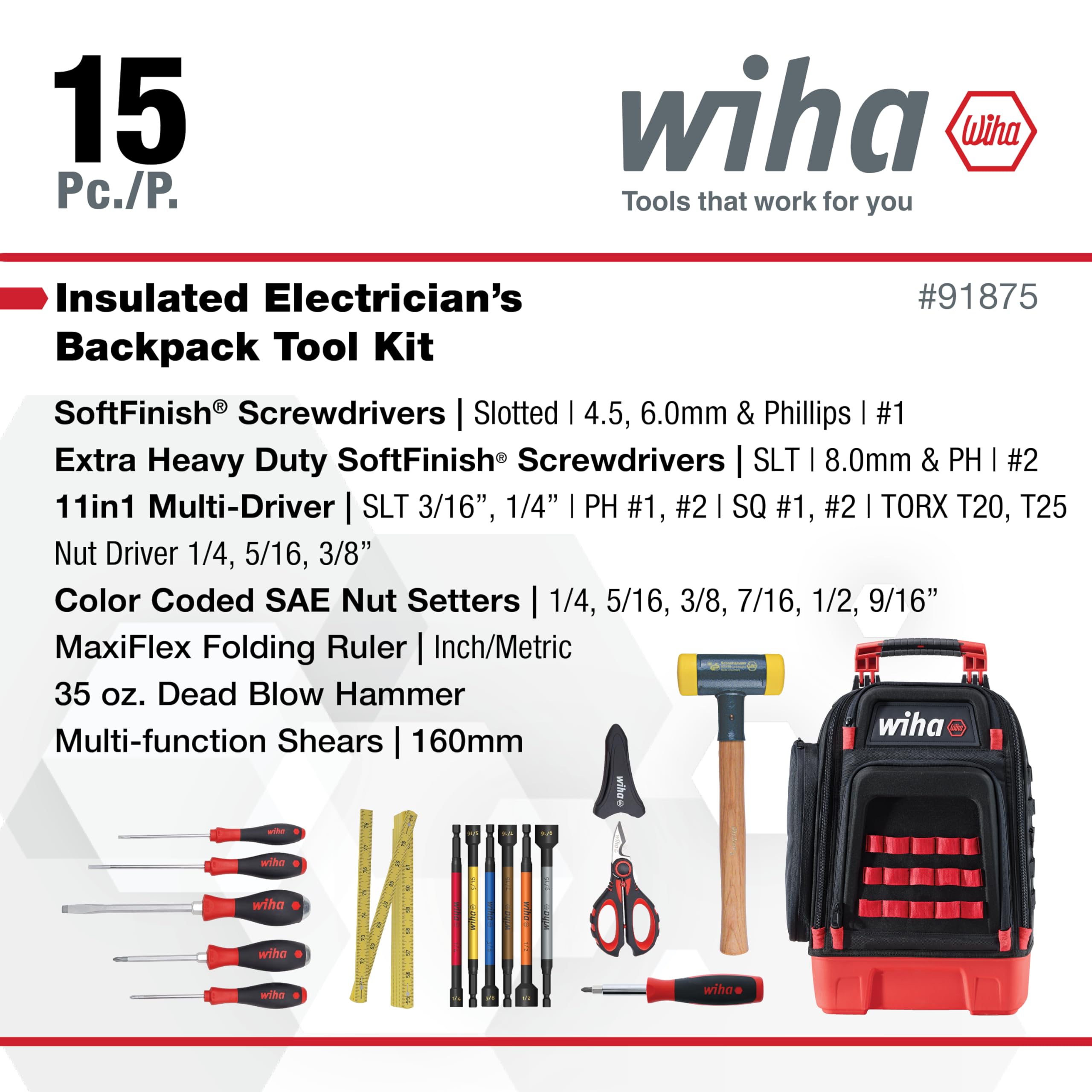 Wiha 91875 15 Piece Industrial MRO Tool Kit in Heavy Duty Backpack